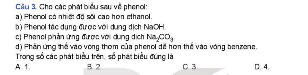 c, Đúng. Phenol có tính acid mạnh hơn nấc 2 của $H_2CO_3$ nên có phản ứng sau: