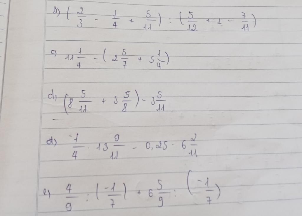 `b, ( 2/3-1/4+5/11):(5/12+1-7/11)`
