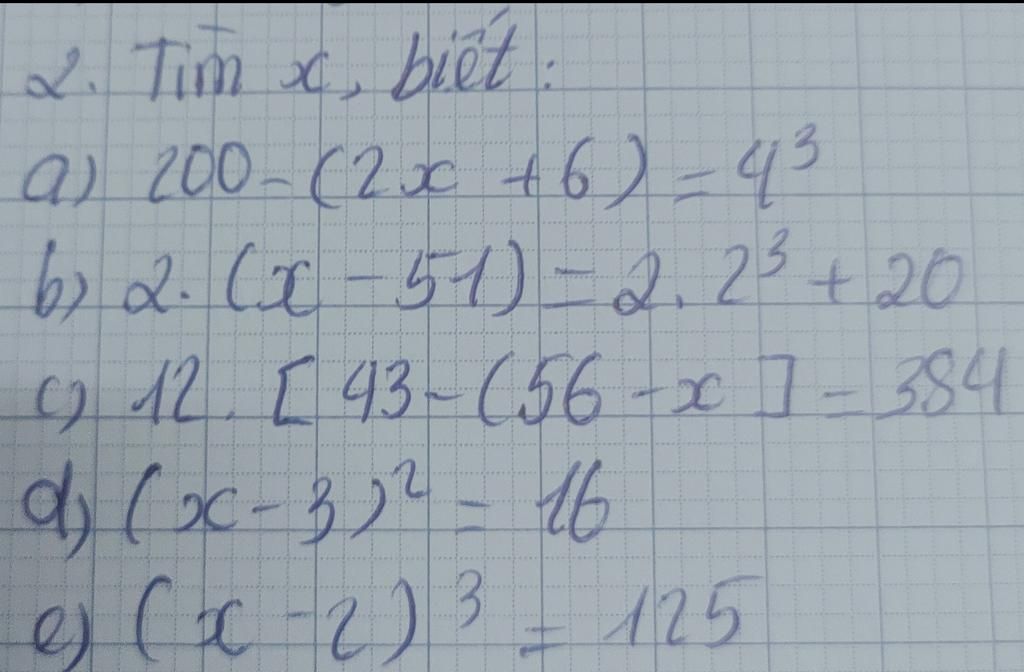 b) 2 ( x − 51 ) = 2.2^3 + 20