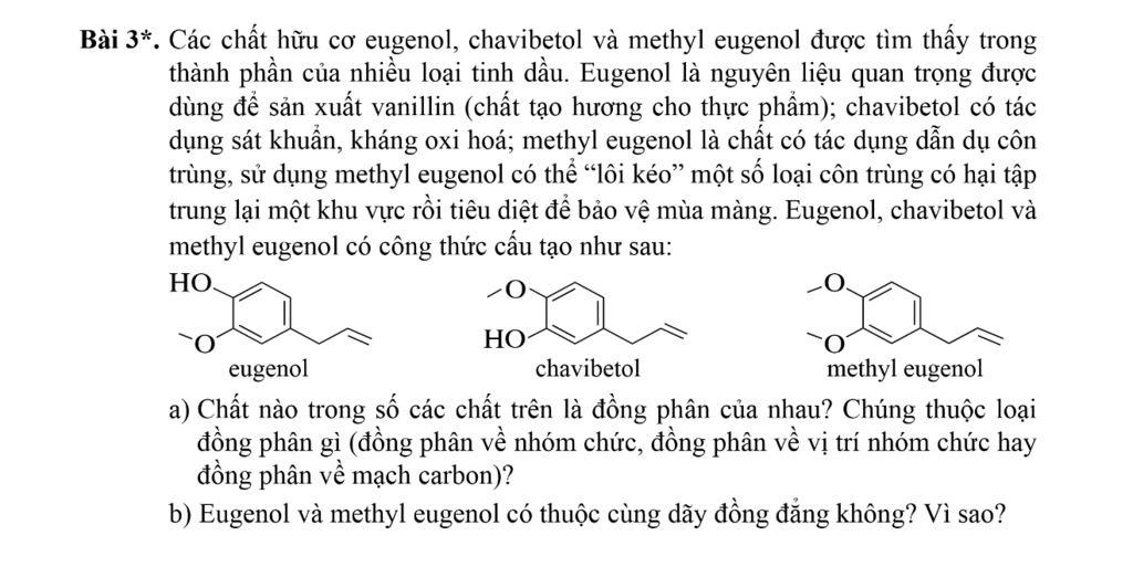 Vậy eugenol và chavibetol là đồng phân của nhau do có cùng công thức phân tử. Chúng thuộc loại đồng phân về vị trí nhóm chức.