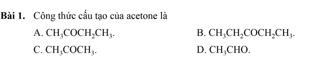 Dimethyl ketone ($CH_3COCH_3$) là một ketone lỏng hay gặp trong thực tế, nhiều ứng dụng, do đó nó có tên thông thường. Tên thông thường của dimethyl ketone là acetone.