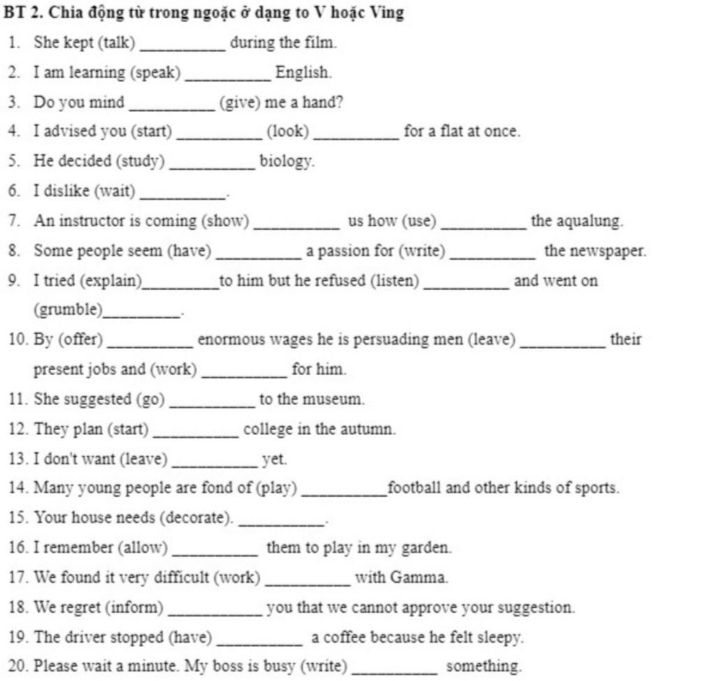Suggest + V-ing: gợi ý làm j (khi không có tân ngữ).