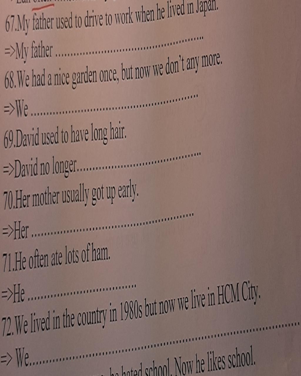 67.My father used to drive to work when he lived in Japan.