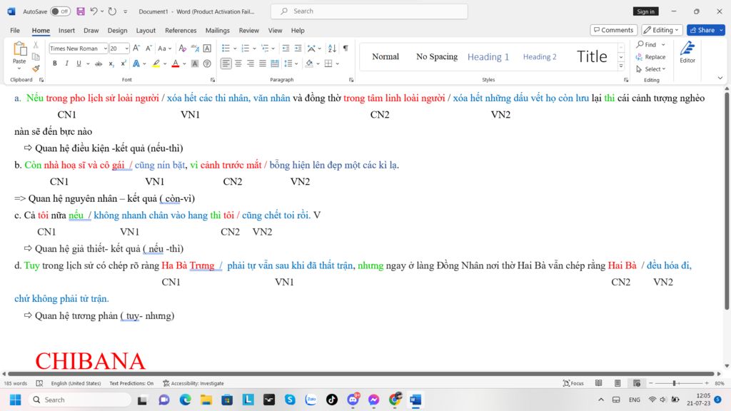 `d.` Câu ghép: Ta thử lấy truyện Hai Bà Trưng mà xét. Tuy trong lịch sử có chép rõ ràng Ha Bà Trưng phải tự vẫn sau khi đã thất trận, nhưng ngay ở làng Đồng Nhân nơi thờ Hai Bà vẫn chép rằng Hai Bà đều hóa đi, chứ không phải tử trận.