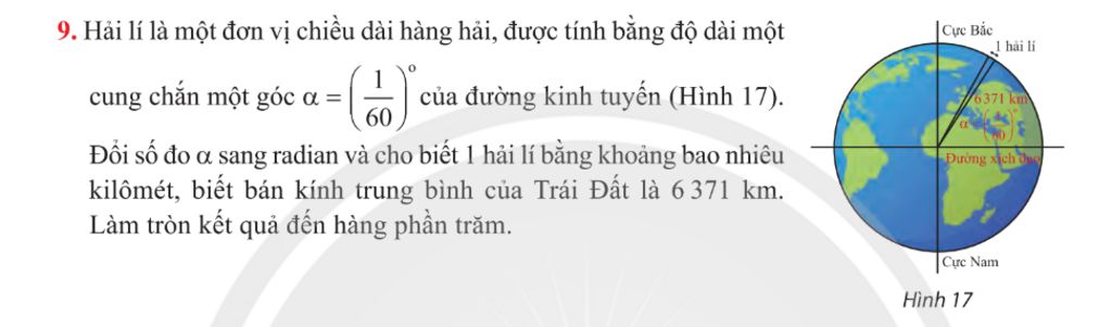 9. Hải lí là một đơn vị chiều dài hàng hải, được tính bằng độ dài một của đường kinh tuyến (Hình 17).
