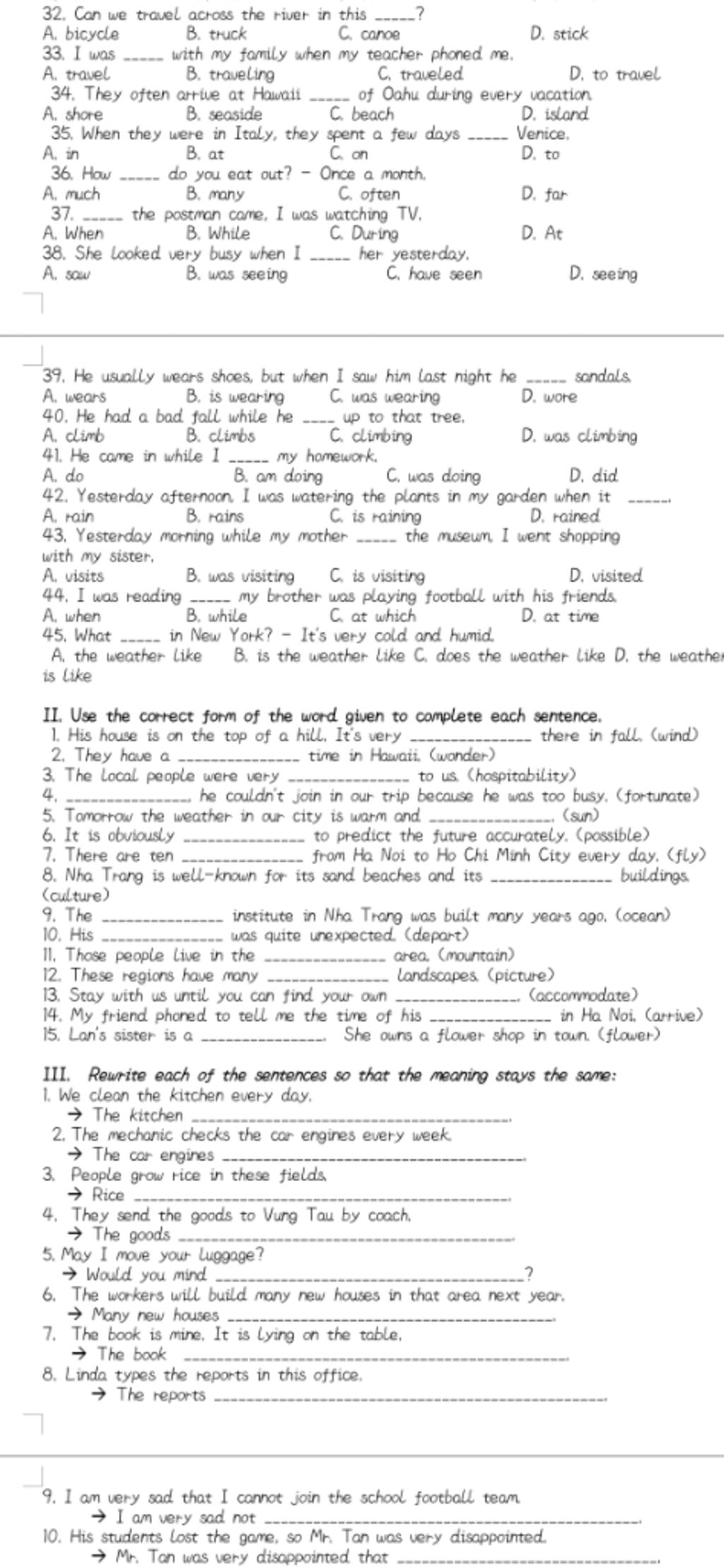 1. The kitchen is cleaned every day 2. The car egines is checked by the machenic every weekend 3.The good is sent to Vung Tau by coach 4.Rice is grew in these fields 5.Many new house will be built the worker next year 6