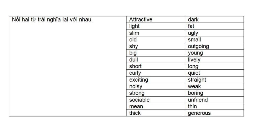 `-` attractive : thu hút, hấp dẫn >< ugly: xấu