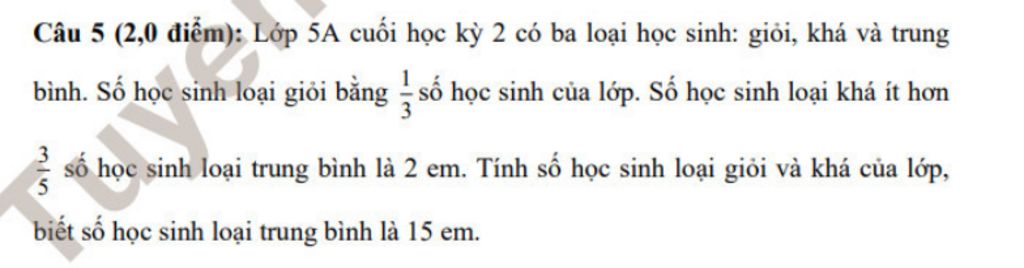 $\dfrac{3}{5}$ số học sinh loại trung bình là: