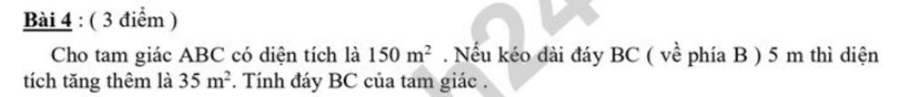 Độ dài đáy BC của hình tam giác ABC là `:`