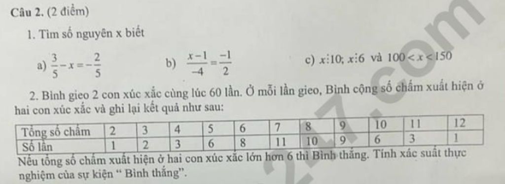 Vậy xác suất thực nghiệm "Bình thắng" là $\dfrac{2}{3}.$