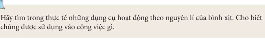 Trong thực tế có nhiều dụng cụ hoạt động theo nguyên lí của bình xịt như: