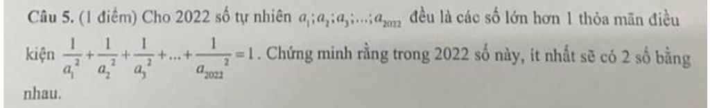 Giả sử trong `2022` số tự nhiên `a_1 ;a_2 ;a_3 ;...;a_2022` không tồn tại `2` số tự nhiên bằng nhau