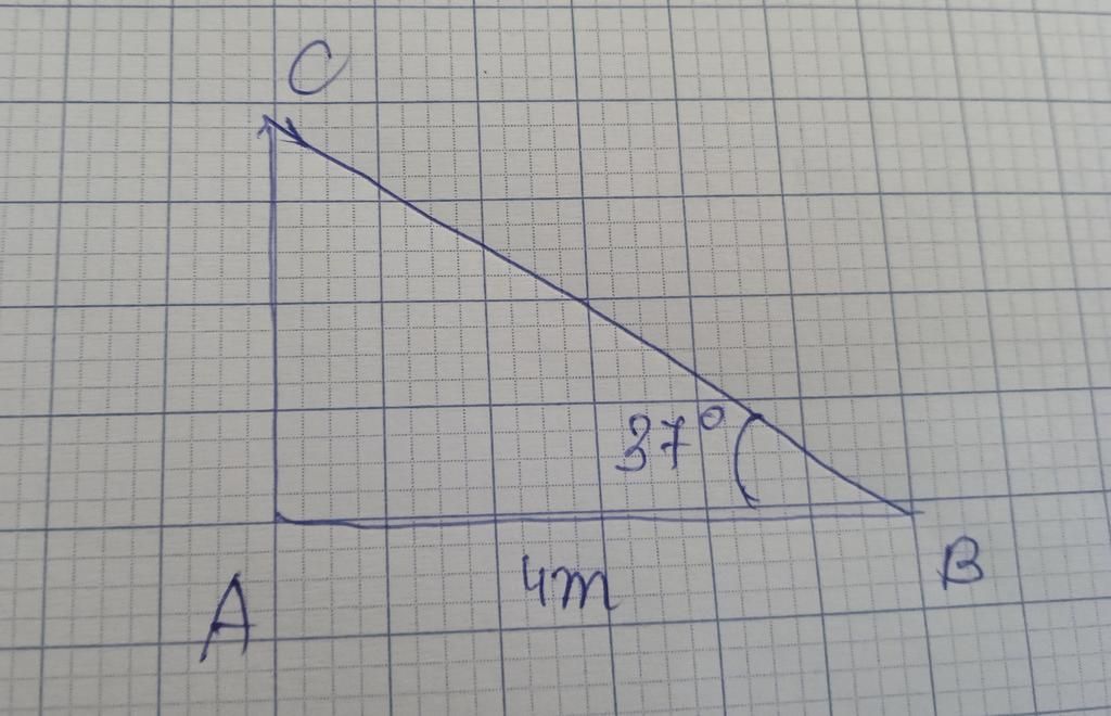 `sinB = (AC)/(BC) ⇔ BC = (tan37^o . 4)/(sin37^o) ≈ 5m`