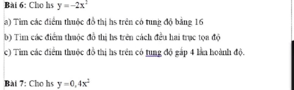 c. Tung độ gấp 4lần hoành độ tức y = 4x. Thay vào ta được: 4x = - 2x^2