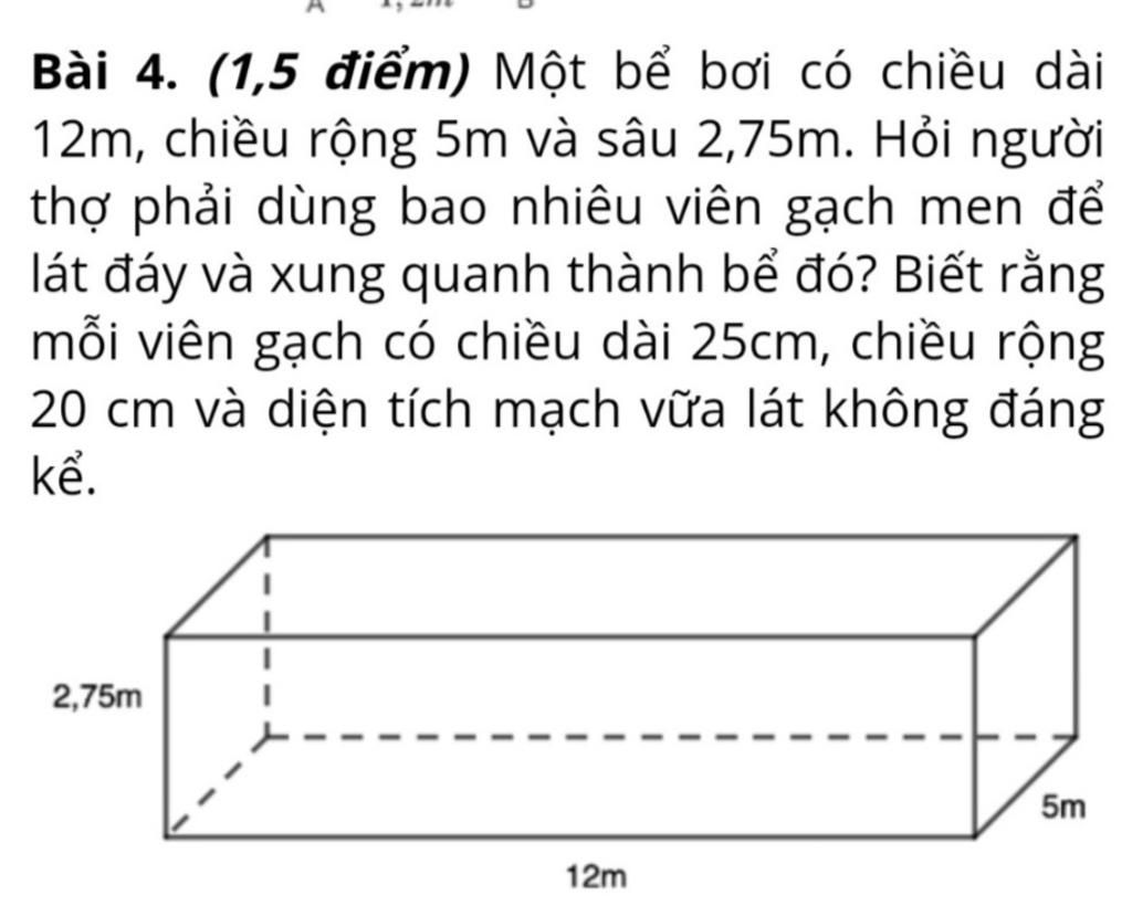 Số viên gạch men người thợ phải dùng để lát bể bơi đó là: