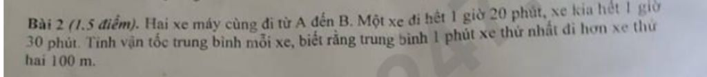 $\Rightarrow $ Vận tốc xe thứ hai là $x-6 (x>0; km/h)$