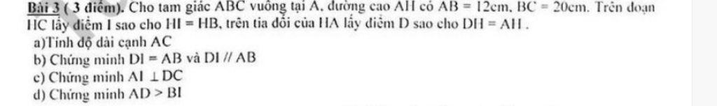 $\Rightarrow AI \perp DC\\ d) AD=2AH\\ BI=2BH$