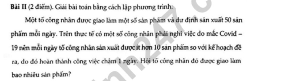 Gọi số sản phẩm tổ công nhân đó được giao làm là `x` (sản phẩm) `(x in NN^(**))`