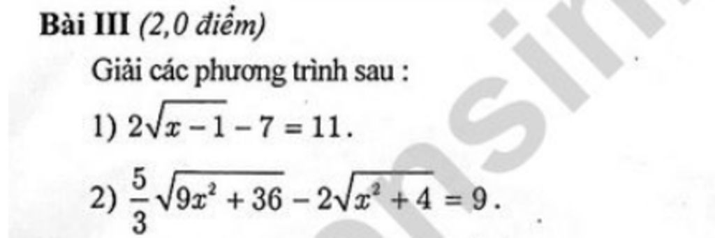 `2\sqrt{x-1}-7=11` `(đk:x\ge1)`