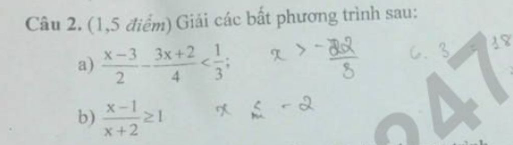 `b) ( x - 1 )/( x + 2 ) >= 1` `dkxd : x \ne -2`