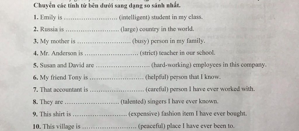 - Đối với tính từ dài : S + be + the + most + long adj + N + cụm từ chỉ nơi chốn