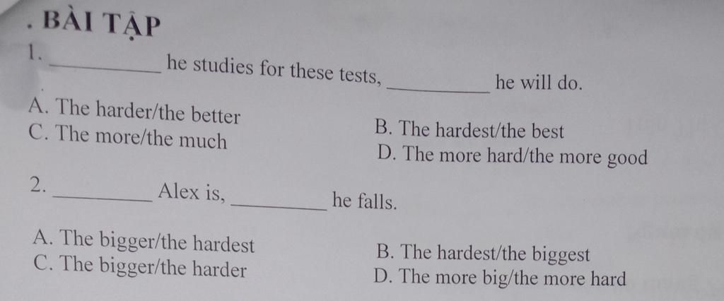 cấu trúc :the adj(ss hơn)+S+V,the adj(ss hơn) S+V