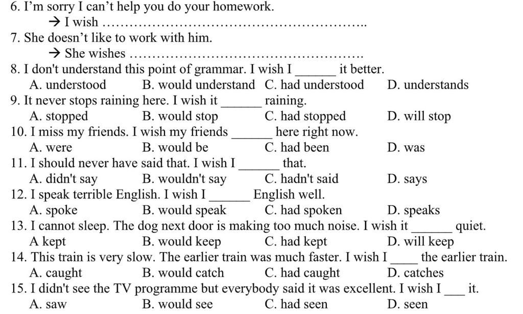 - Khẳng định (+): S + wish(es) + S + V-ed (Verb - ed)