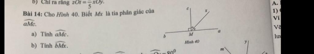 Mà `hat{bMc}` và `hat{cMx}` là hai góc kề nhau