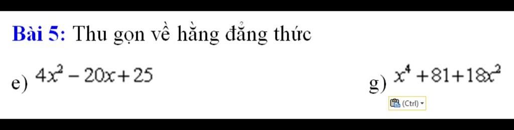 `e)` `4x^2 - 20x + 25`