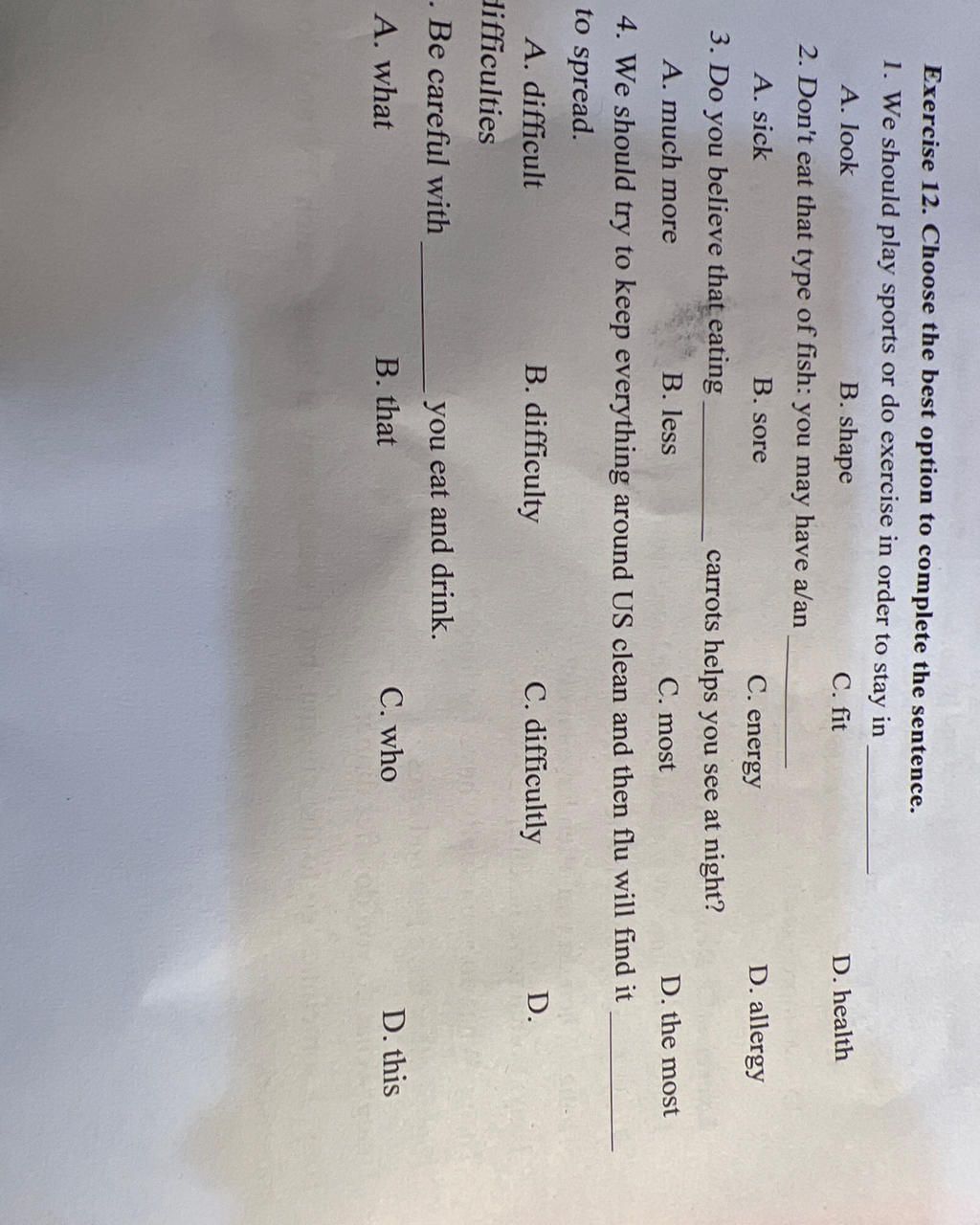 `-` Loại `A` và `B` vì không hợp nghĩa (ốm và đau)