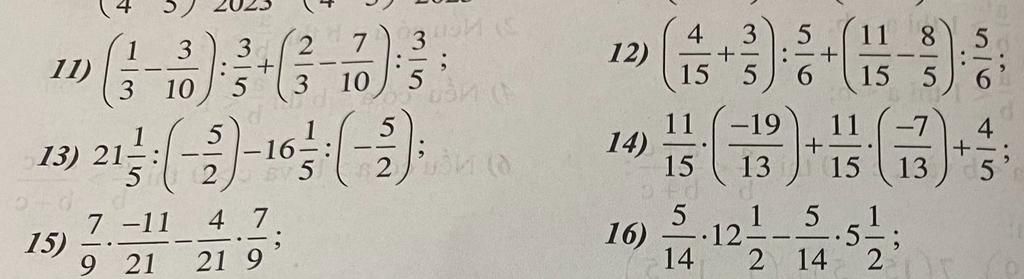 $11)^{}$ $(^{}$ $\frac{1}{3}-$ $\frac{3}{10}):$ $\frac{3}{5}+($$\frac{2}{3}-$ $\frac{7}{10}):$ $\frac{3}{5}$
