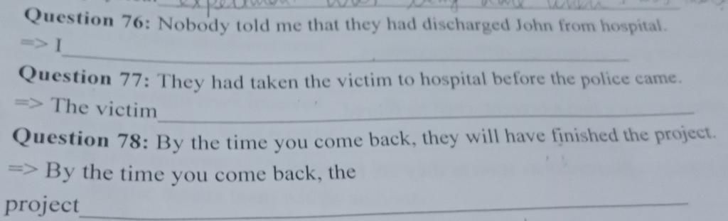 `78.` By the time you come back, the project will have been finished.