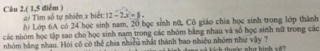 Gọi `a` (nhóm) là số nhóm cô có thể chia.