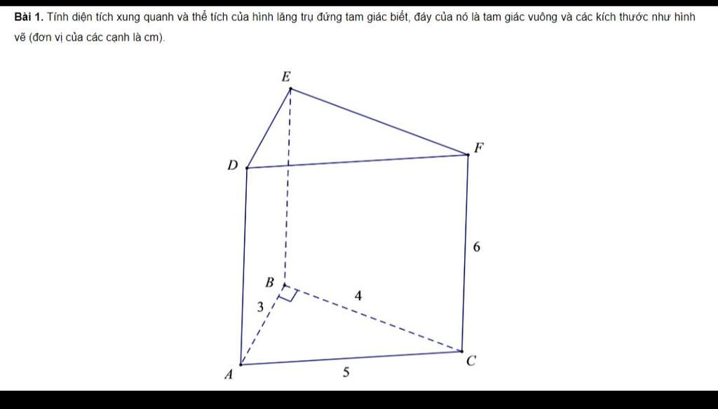 Diện tích xung quanh hình lăng trụ đứng tam giác là: