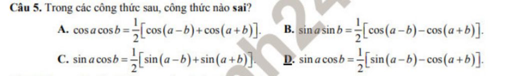 `@ sin a cos b=1/2[sin(a+b)+sin(a-b)]`