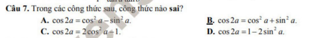 `=>` Công thức ở đáp án `B` sai