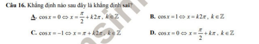 Câu 16. Khẳng định nào sau đây là khẳng định sai?