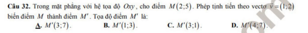 Vậy `:` toạ độ điểm `M` là `M'(3;7)`