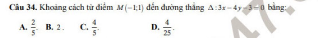 `d(M;Delta)=(|3.(-1)-4.1-3|)/(sqrt{9+16})=10/5=2`
