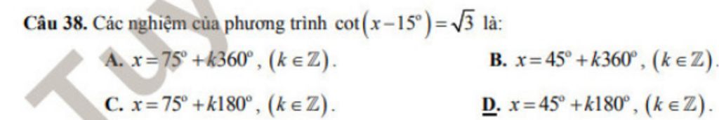 `@)\ cotx=cota^@<=>x=a^@+k180^@,\ k in ZZ`