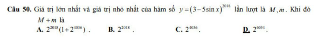 `=>` `0 <= (3-5sinx)^2018 <= 8^2018 \ forall \ x in RR`