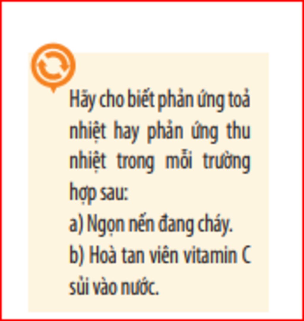 b, Phản ứng thu nhiệt, do cốc nước thả vitamin C thì nhiệt độ giảm đi nên sờ vào cảm thấy mát.