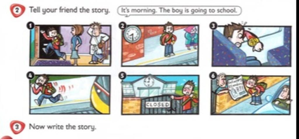 The boy was saying goodbye to his parents . Then , he went to bus stop to wait for bus . When he was travelling by bus , he saw his clock . He was surpise because he was late for school . After that , he ran quickly but the school's door is closed