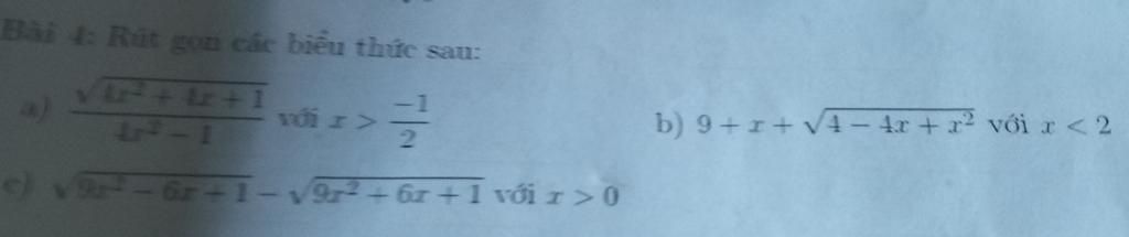 `sqrt(4x^2+4x+1)/(4x^2-1)` với `x\ne 1/2; x> -1/2`