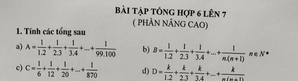 BÀI TẬP TỔNG HỢP 6 LÊN 7