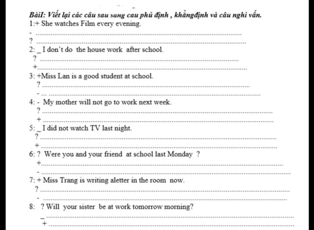 $(-)$ Miss Trang isn't writing a letter in the room now.