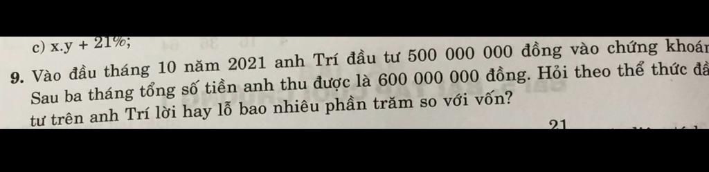 9. Vào đầu tháng 10 năm 2021 anh Trí đầu tư 500 000 000 đồng vào chứng khoán