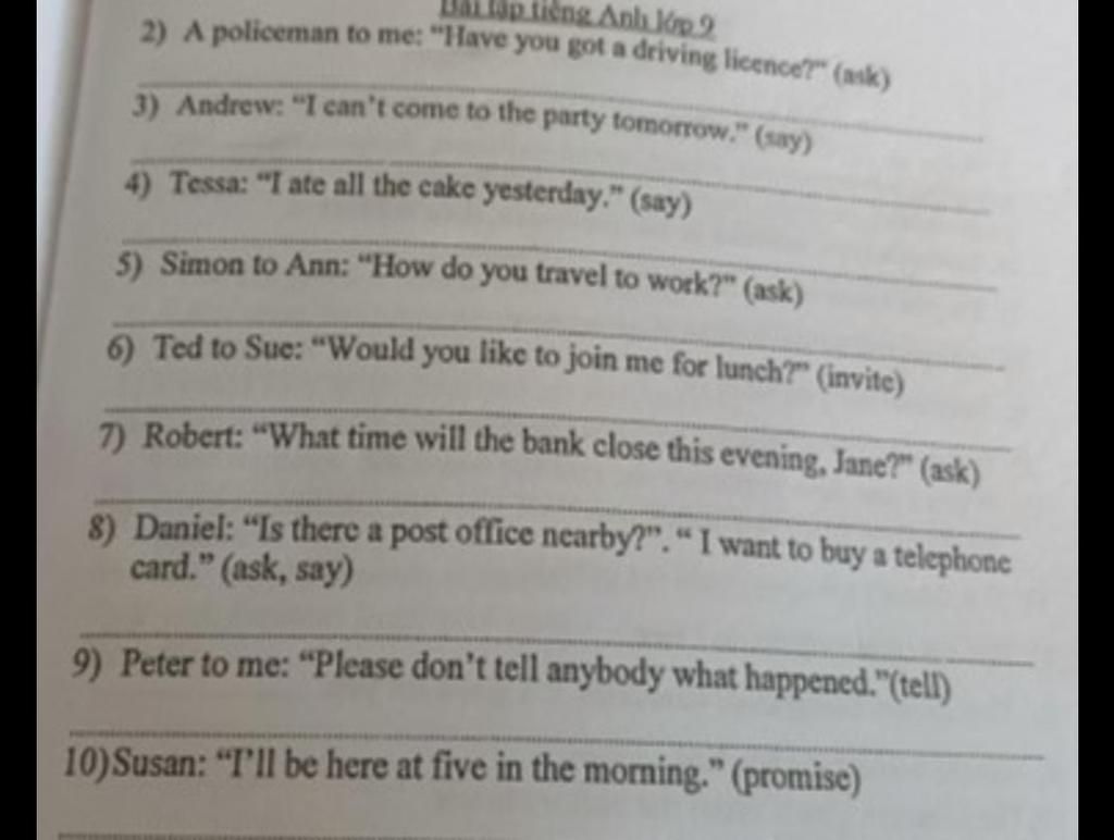 `3` Andrew said that he couldn't come to the party the next day