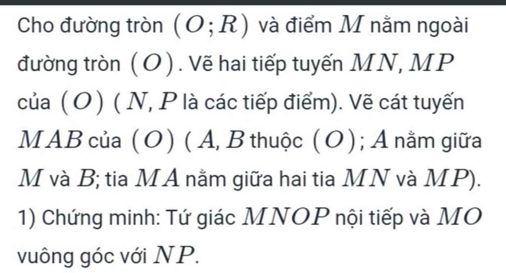 Cho đường tròn (O;R) và điểm M nằm ngoài