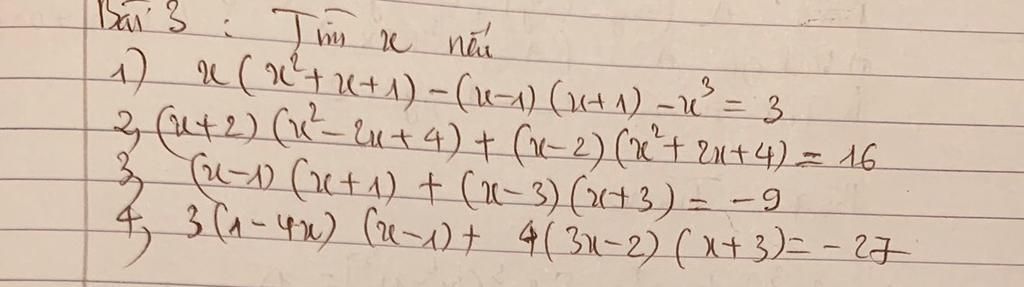 `x(x^2 +x+1)-(x-1)(x+1)-x^3 =3`
